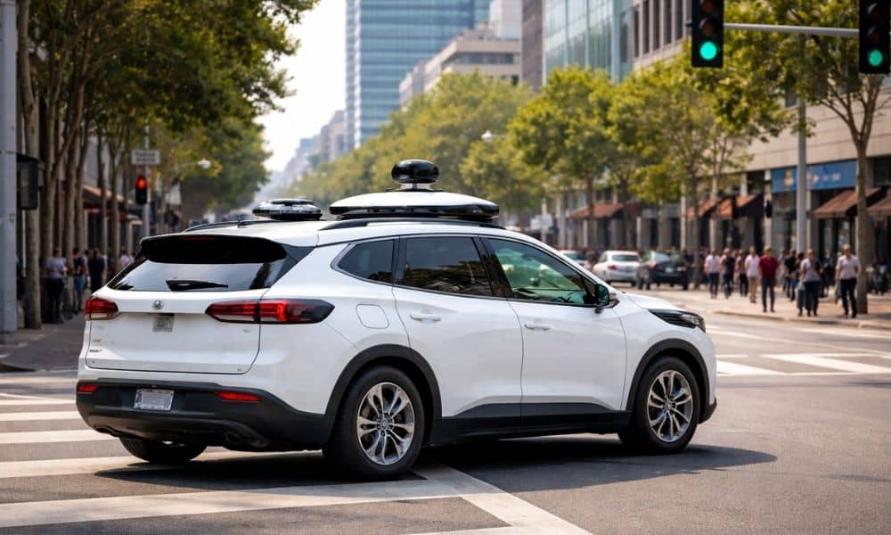 Autonomous robotaxi at urban intersection Published February 19, 2026 at 1000 × 600 in How Robotaxis Are Changing Transportation Engineering