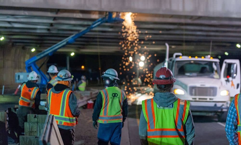 Overnight bridge construction work Published February 6, 2026 at 1000 × 600 in Why Civil Engineering Companies Close Bridges at Night